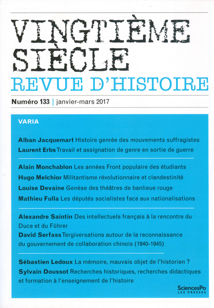 Au sommaire notamment : Histoire genrée des mouvements suffragistes - Travail et assignation de genre en sortie de guerre - Les années Font populaire des étudiants - Militantisme révolutionnaire et clandestinité - Genèse des théâtres de banlieue rouge - Les députés socialistes face aux nationalisations