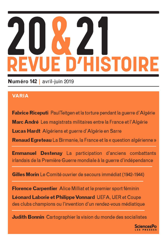 Paul Teitgen et la torture pendant la guerre d'Algérie - Magistrats militaires entre France et Algérie - Algériens et guerre d’Algérie en Sarre - Birmanie, France et « question algérienne » - Participation d’anciens combattants irlandais de la Première Guerre mondiale à la guerre d’indépendance - Comité ouvrier de secours immédiat (1942-1944) Lire la suite